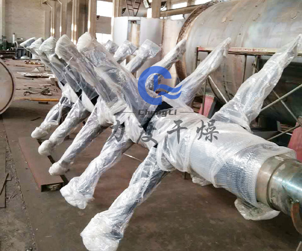 ?攪拌軸:有常規(guī)型(不加熱)和空芯型兩種,空芯型攪拌軸內(nèi)部設(shè)有套管,用于軸及耙臂內(nèi)熱媒的進(jìn)入和排出。耙臂焊接在攪拌軸上,耙臂上方設(shè)有帶傾角的耙片(也叫抄板),靠近筒體的耙片在旋轉(zhuǎn)過(guò)程中清理附著在筒體壁上的物料,使間壁傳熱表面不斷更新,利于物料混合和熱量傳導(dǎo)。